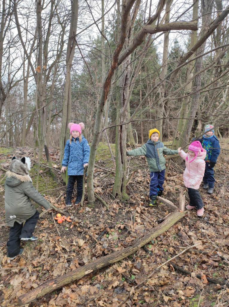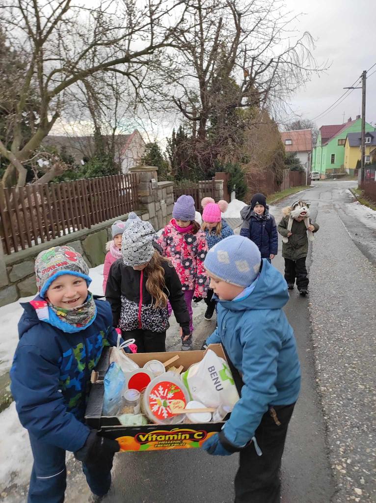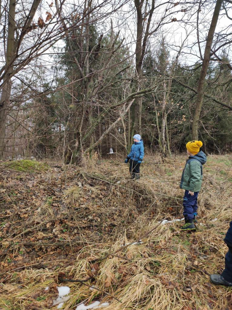Cestou nám padal drobný deštík a silnice, která vede na sopku, se proměnila v ledovku. Šli jsme tedy podél silnice a u střelnice jsme si to nakonec namířili mezi stromy k poli. Tam děti nechaly dobroty zvířátkům a ptáčkům.