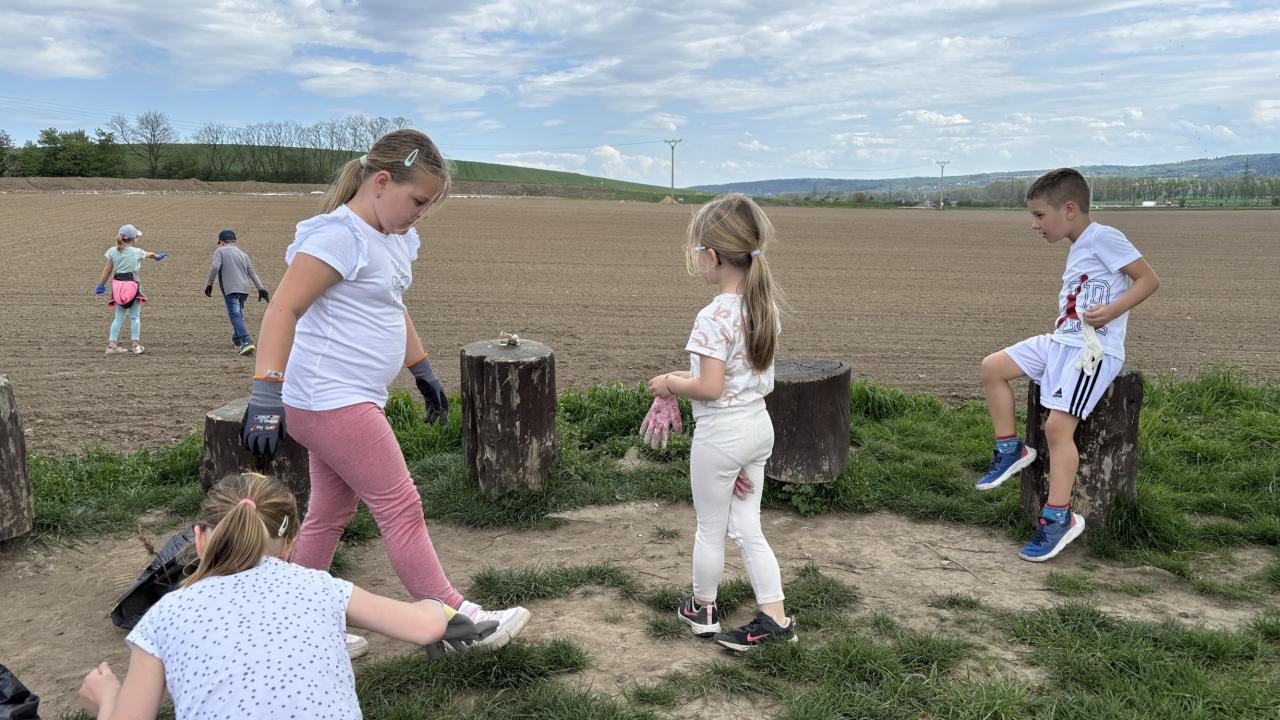 Děti se do sběru pustily s velkou energií, sesbírali jsme plechovky, PET lahve, plastové zbytky, drobné úlomky dlaždic, papírky… prostě to, co do přírody nepatří, na krátkém úseku k odpočívadlu toho bylo na celý odpadový 35 litrový pytel!