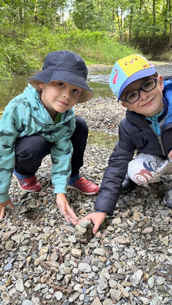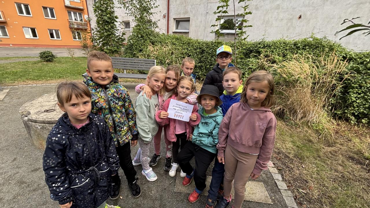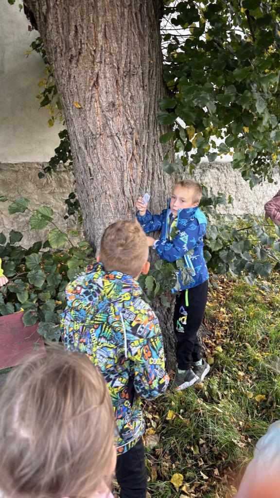 Ta nás vedla přes sopku na hřiště u kuželny. Nejstarší děti připravily pro mladší kamarády úkoly, které poschovávaly v dopisech na trase tvořenou šipkami. Šipky, kreslené křídou, ale i z přírodnin z lesa a kamenů nás vedly obcí i lesem. Zajímavé úkoly děti plnily s chutí a stejně radostně hledaly i poklad na konci hry.