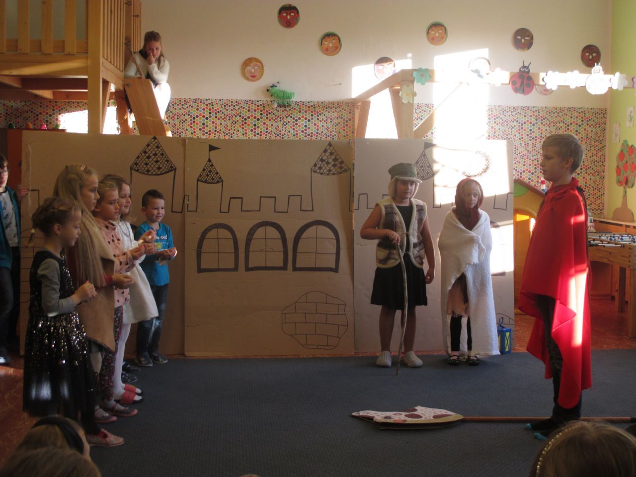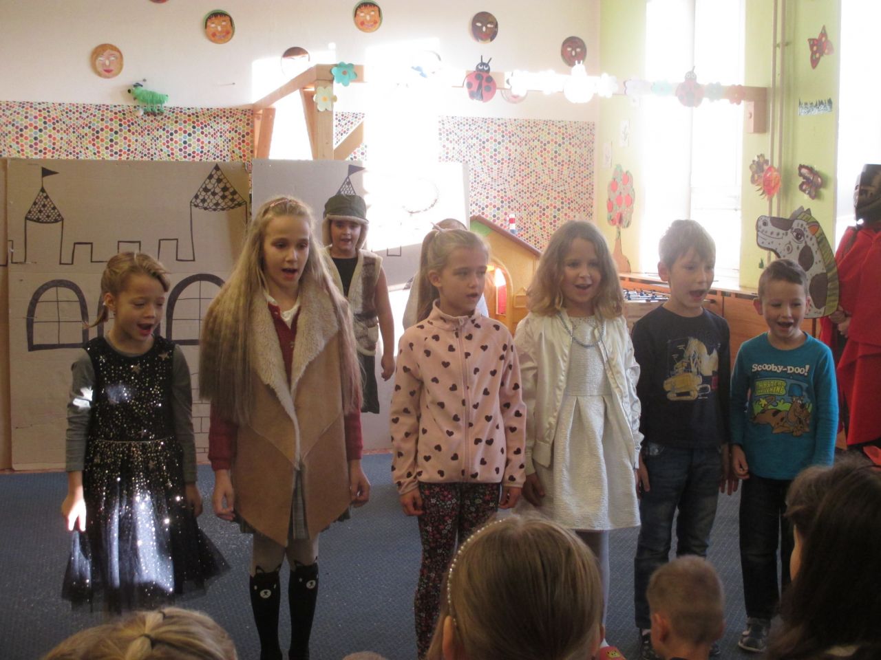 Ve středu 13. listopadu nám počasí nepřálo a tak se Svatomartinská slavnost světel spojená s lampionovým průvodem nekonala. Děti se ale připravovaly a proto jsme všichni společně shlédli scénku o sv. Martinovi, poslechli si pranostiky a příběh o sv. Martinovi. Za odměnu dostali všichni svatomartinské rohlíčky.