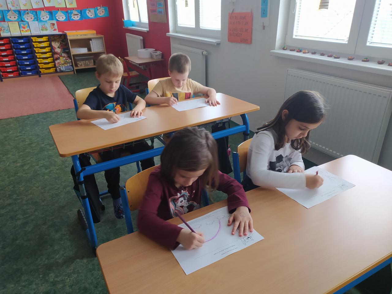 Ve čtvrtek 23. 3. jsme se věnovali grafomotorice, správnému držení tužky, poznávání barev.