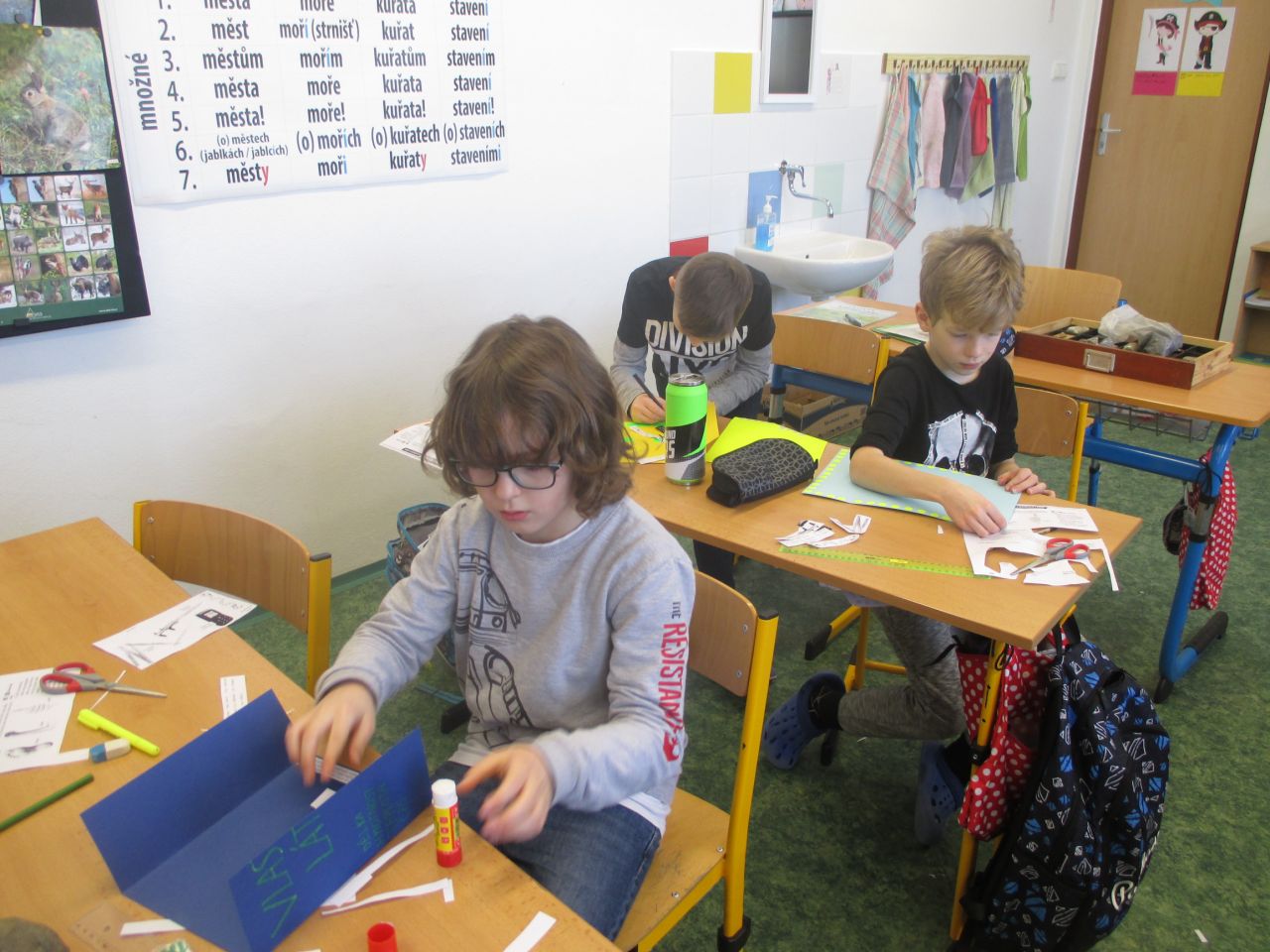 Učební pomůcka vlastnoručně vyrobená dětmi se hodí při opakování učiva o délce, hmotnosti, čase a teplotě.