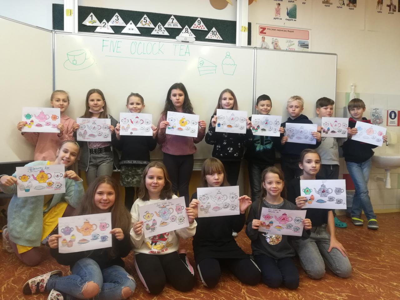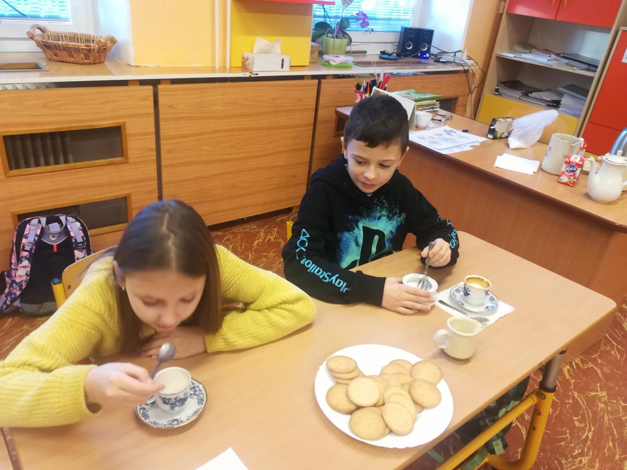 Čaj o páté není jen záležitostí anglických domácností či restaurací, ale v rámci hodiny angličtiny i žáků 4. třídy.