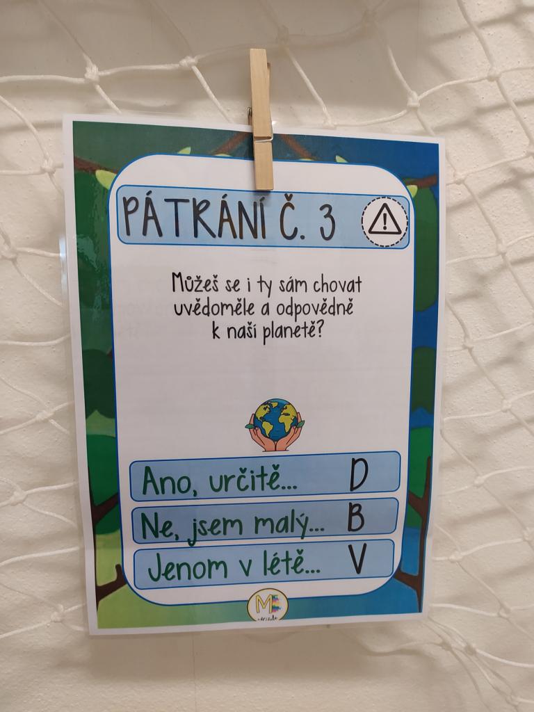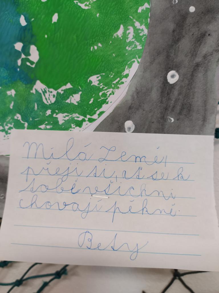 V rámci oslavy Dne Země jsme si ve výtvarné výchově vyrobili planetu Zemi a ve slohu jí napsali vzkaz. Po návštěvě zahradnictví jsme absolvovali Pátračku na téma Den Země, kde jsme si zopakovali základní informace, jak naši planetu šetřit.